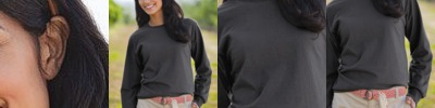 - Reverse coverstitched neck, shoulder, armholes, sleeves and bottom hem