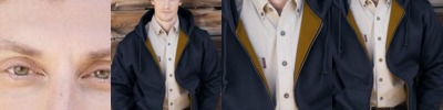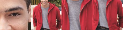 - Raw-edge hood opening, pocket seams, cuffs, waistband, zipper placket and side seams