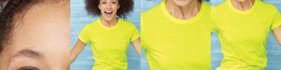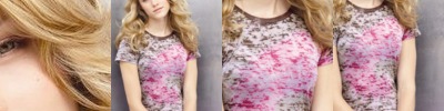 A short sleeve silhouette with an allover burnout pattern in 12 color-your-world shades.