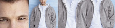 - Raw-edge seams around hood opening, shoulders, pocket seams, cuffs, waistband and side seams