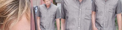 - Three dyed-to-match pearlized flower buttons on a sleek placket